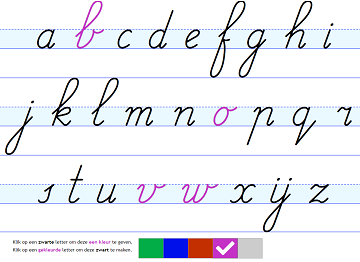 “Schoolschrift” heeft meerdere varianten van sommige letters. Hierdoor kun je bijna altijd beschikken over een letter die aansluit op de schrijfmethode van school.