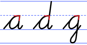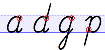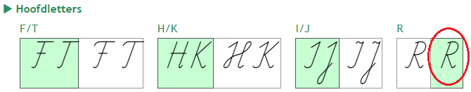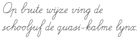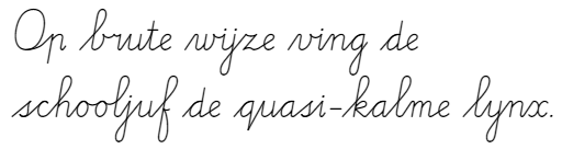 | Font Schoolschrift | 75° | 1:1 | (de doorverbonden 't' is even hoog, de niet-doorverbonden 't' is minder hoog) |