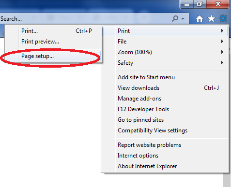 Eerst moet de 'Page setup' dialoog geopend worden: