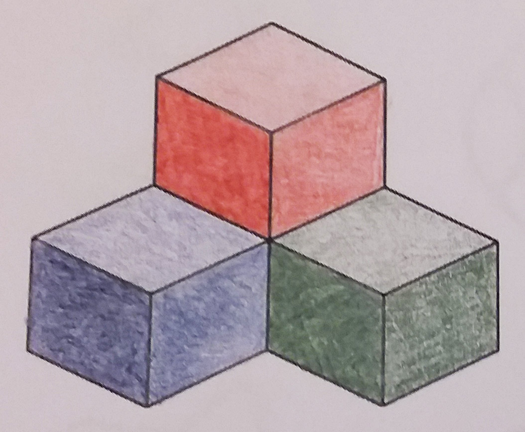 Een opdracht bij isometrische kubussen kan zijn: gebruik één kleurpotlood per kubus; kleur de bovenkant het lichts en de linkerkant het donkerst.