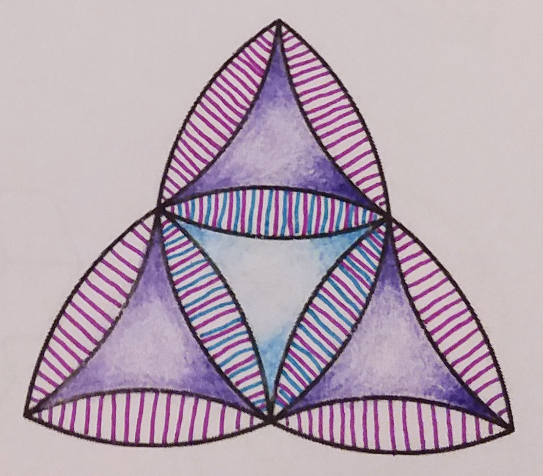 De driehoeken zijn gekleurd met kleurverloop: donker in de punten, licht in het midden. De langgerekte vlakken zijn gearceerd.