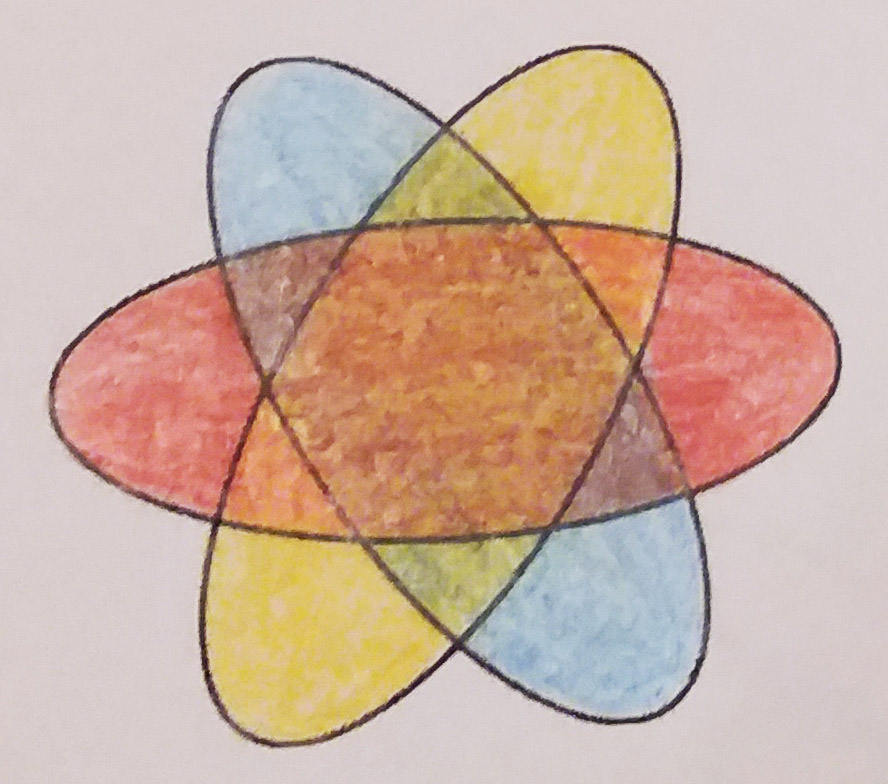 Een andere mogelijkheid bij dezelfde kleurplaat is om overlappend te kleuren. Er ontstaan dan mengkleuren.