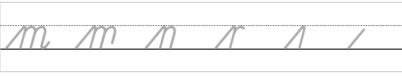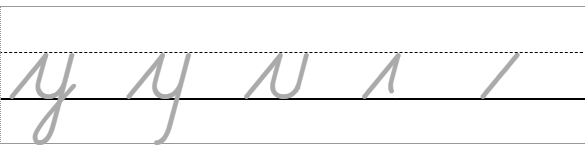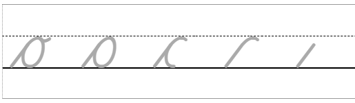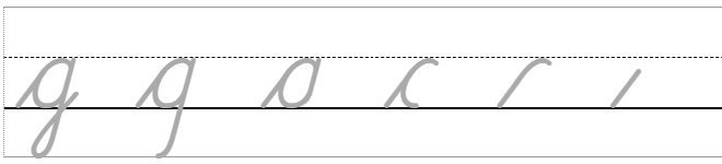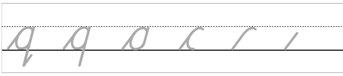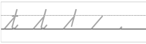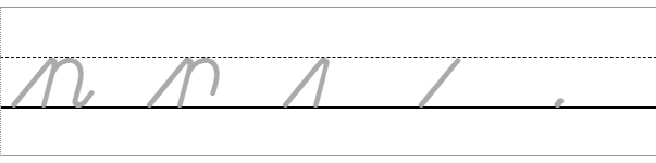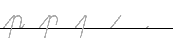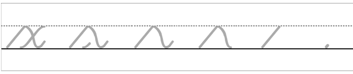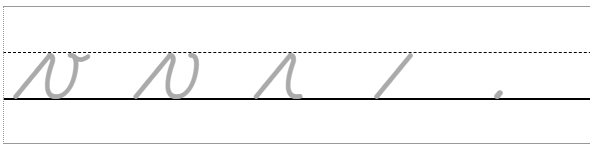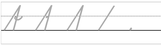 De haal van linksonder naar rechtsboven wordt pas geschreven als de rest van het woord af is.