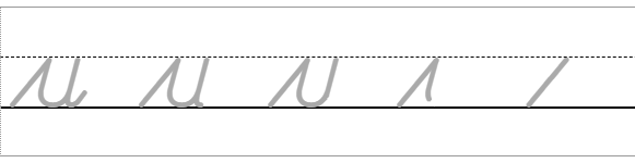 - Het is ook niet duidelijk of we na de aanhaal (beeld 4) de pen optillen en verplaatsen naar de bovenkant van de neerhaal (beeld 3), of dat we na de aanhaal met een stompe hoek naar boven bewegen en bij de neerhaal dus een overlappende streek maken (ook beeld 3). Je bent vrij om hier zelf een keuze in te maken.