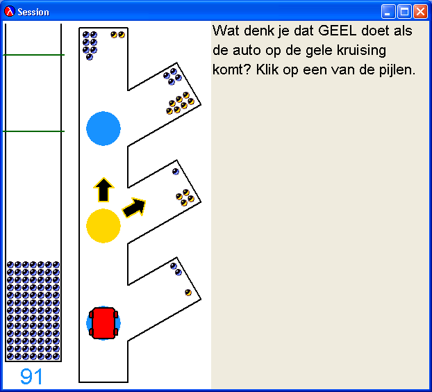 This program is an implementation of Hedden and Zhang's matrix game experiment (2002). It was used for my research project: "Children's development of reasoning about other people's minds". In this experiment, a test subject and a computer opponent move a car across a track. Each player tries to move the car in such a way that his own payoffs are maximized. To play the game successfully, a player needs to predict his opponent's actions. The game can be used to test a subject's application of first and second order theory of mind.