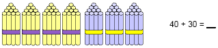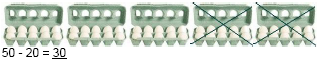 De opdracht is steeds om de optelsom of aftreksom te maken. Bij iedere som zijn staafjes/eieren/bolletjes afgebeeld. Deze staafjes/eieren/bolletjes zijn in groepen van 10 gegroepeerd, zodat er handig m.b.v. tientallen gewerkt kan worden.